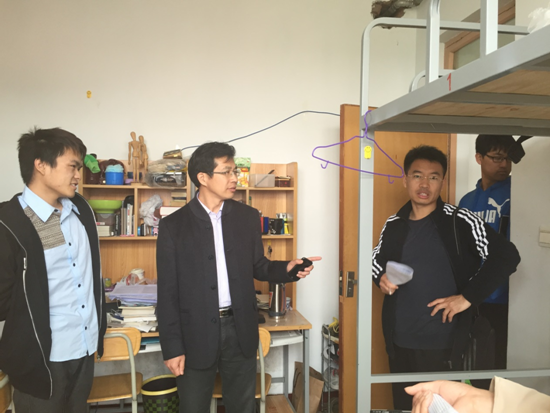 五一劳动节假期将至,文学院学生工作组高度重视宿舍安全管理工作,为保障假期学生安全,排查安全隐患,4月29日上午,文学院党委副书记杨武成带领学院学生工作组全体辅导员对全院学生宿舍进行现场调研。