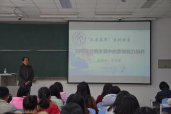 11月13日上午10点,文学院在南教116教室举办博萃节“文萃英华”系列讲座之《研究生自我发展中的思维能力培养》。本次讲座由文学院院长王书亭教授主讲,2016级研究生辅导员梅琳老师应邀出席,文学院全体研究生到场听讲。