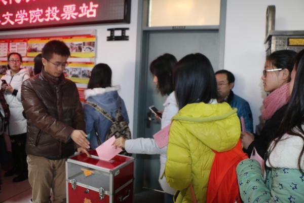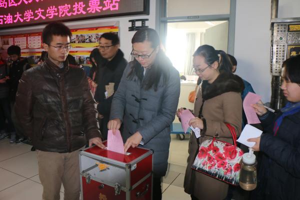 黄岛区第二届人大代表文学院投票站现场