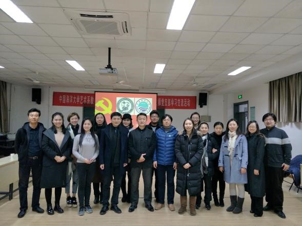 2017年12月14日,中国海洋大学艺术系党支部一行7人,在支部书记张咏春老师的带领下来我系进行支部交流活动。活动在音乐系129 教室举行,文学院音乐系全体党员参加了此次交流。此次活动由音乐系支部书记刘清主持,海大艺术中心党支部书记张老师首先介绍了艺术中心党员活动的基本情况以及相关的活动内容。其后由文学院音乐系系主任苏静介绍了我系人才培养、师资建设等方面的情况,张楠老师介绍了近年音乐系党支部的基本活动。双方在开展支部活动的方式方法、范围等进行了交流,并互相交换了各自对十九大的学习心得,同时也就音乐学科建设、师资力量培养等方面进行了讨论。