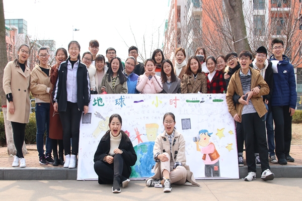 为接力地球一小时活动,践行十九大的绿色行动,法学1701班于2018年3月22日中午在玉兰苑西门展开团日活动。