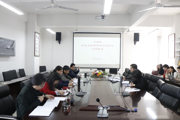 3月23日,根据学校工作安排,学院召开校自主创新科研计划项目中期检查,文学院徐万治教授、王学栋教授、孙秀丽教授、沈壮娟副教授,马克思主义学院张瑞涛教授组成专家评审组,学院教授委员会主任徐万治教授担任组长。学院副院长魏学宝和2017年度立项的青年博士基金项目、自主创新科研计划项目负责人对项目进行了汇报。评审组根据相关汇报和书面材料,经过评议,同意17个项目通过中期检查。