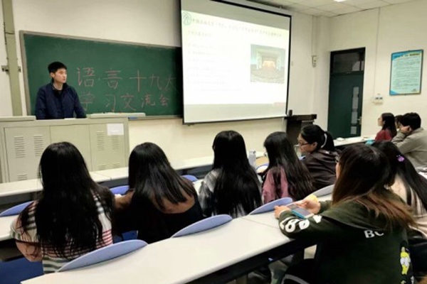 4月19日,全讯汉语言文学1701团支部和1702团支部于南堂306室举办学习十九大主题班会。本次班会由全讯团委委员、学生会主席郭嘉豪主讲,2017级汉语言文学专业全体学生参加。