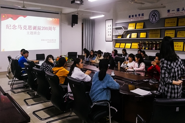 文学院汉语言文学1601团支部在文理楼358室开展“纪念马克思诞辰200周年”主题学习活动,纪念马克思诞辰200周年、《共产党宣言》正式发表170周年之际号召学生牢记使命,不忘初心跟党走。