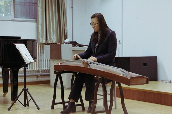 为了让学生了解民族传统乐器,切实感受中国传统乐器的魅力,以“国乐之美——古筝艺术专题讲座”为主题的博雅大讲堂第六期于5月11日在音乐系129教室举办。本期博雅大讲堂由文学院主办,文学院副教授刘清主持,文学院系主任苏静受邀担任主讲人,文学院党委书记张永宁、全校古筝爱好者参加。