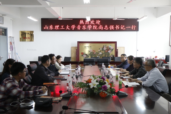 5月14日,山东理工大学音乐学院党总支书记尚志强、副院长张冰、副书记牟海萍、教师卢乃鑫一行莅临文学院进行音乐学科发展交流座谈。文学院院长王学栋、党委书记张永宁、音乐系主任苏静、音乐系党支部书记刘清、交响乐团老师李汉参加了此次座谈。