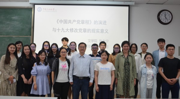 5月23日下午,由文学院学生党总支组织的《中国共产党章程》的演进与十九大修改党章的现实意义讲座在南教110举行。本次讲座由文学院党委书记张永宁主讲,文学院学生党员参加了本次讲座。