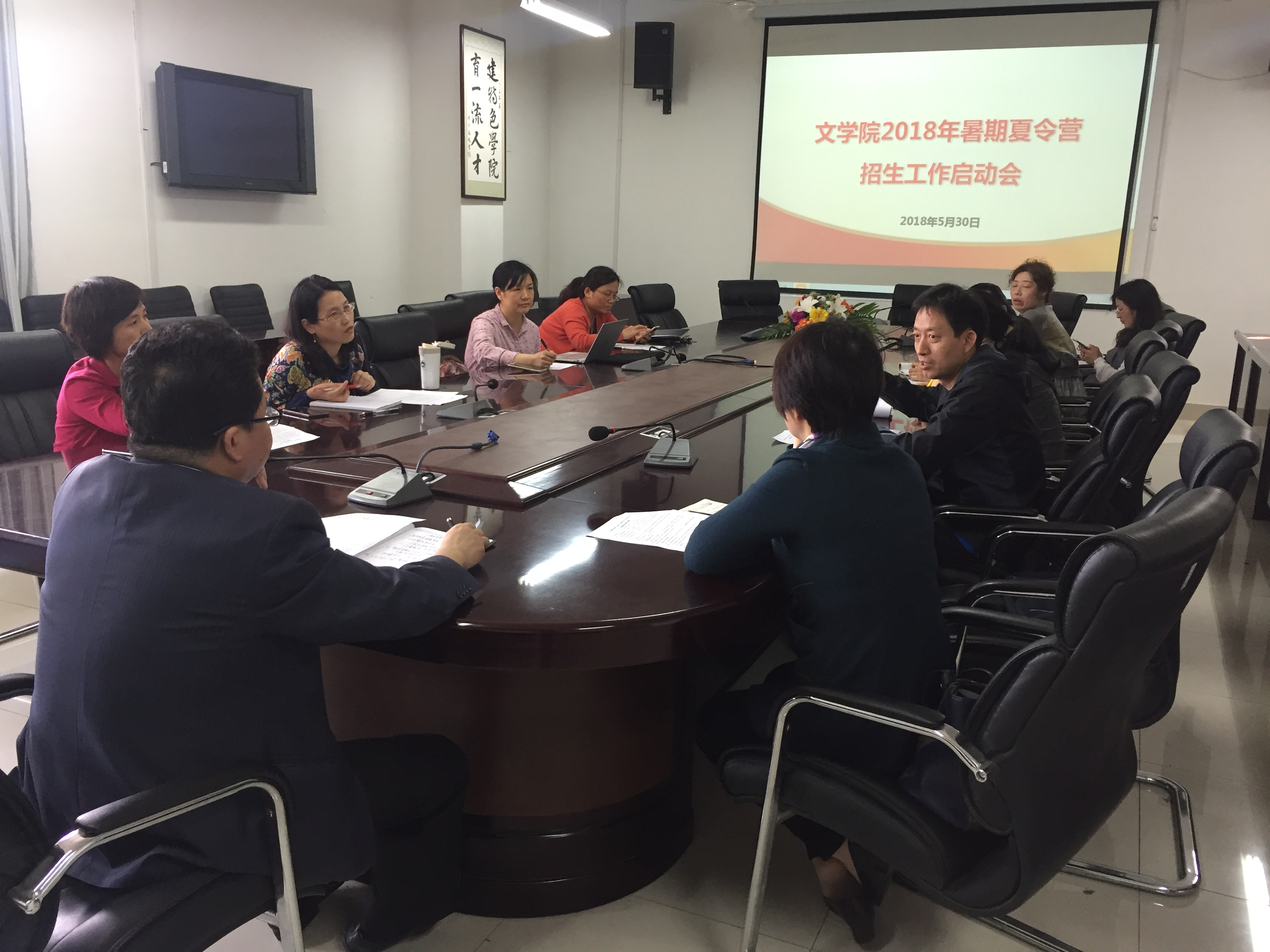 5月30日下午,文学院2018年暑期夏令营招生工作启动会在文理楼358召开。会议由孙大满副院长主持,文学院王学栋院长、各学科负责人、研究生辅导员以及研究生志愿者代表参加。