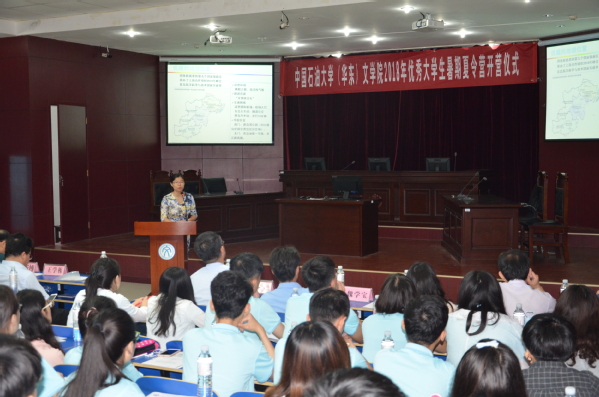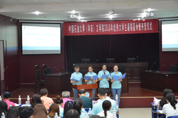 来自不同学校、不同专业的四位营员代表全体营员发言,分别用四种语言进行了问候,展现了全讯独特的风采。同时,表达了对文学院领导和老师的感谢,感谢学校、学院能提供如此好的机会,也表达了他们对进入石大学习的憧憬和向往。最后,营员代表们表示,将服从管理,统一行动,积极参与,尽情展现,完美结业。