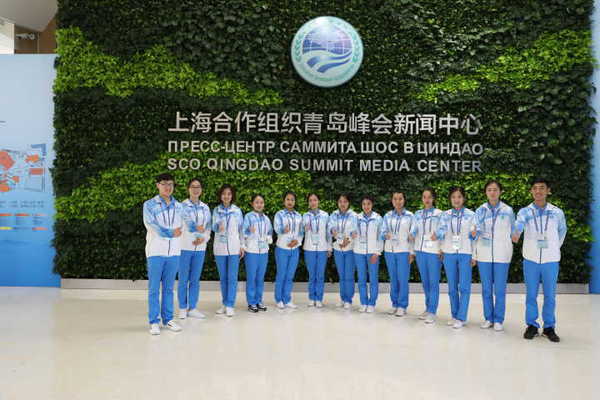 本次上合峰会的志愿者服装设计以灵动的海浪线条为主元素,志愿者们也被大家亲切地称为“小浪花”,在上海合作组织青岛峰会新闻中心,朵朵小浪花引领媒体记者了解峰会、认识青岛,以自己的力量汇聚成海,助力峰会。