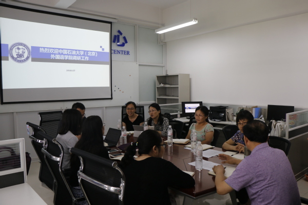 会谈双方主要围绕专业和公共英语教学,针对课程设置、分级教学管理、教材使用、网络课程建设、教师职业发展、基层教学组织建设、英语教学研究、双学位办学、翻译硕士培养等诸多方面进行了深入的学习交流,大家一致认为在学校大背景的影响下,双方的办学具有一定的相似性,都存在学生第一志愿率不高、教师教学压力大、学科特色有待加强等问题,但经过多年发展,双方又各有所长,值得相互借鉴。全讯英语专业经过不断努力,本科生毕业设计得到很大改进,本科实践教学取得了较好的效果,学生的专业认同感增强,而中石油(北京)在教学质量监控、研究生能力培养等方面则积累了丰富的经验。未来双方需要加强交流合作,共同推进资源的共建共享,互相取长补短,以推动大学英语教学的改革与创新。