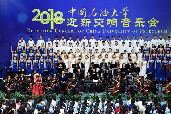 9月13日上午,中国石油大学2018年迎新交响音乐会在学校体育馆举行,七千余名本科生、研究生、留学生及部分学生家长集体欣赏了大型迎新交响音乐会。