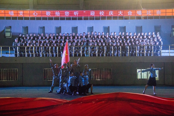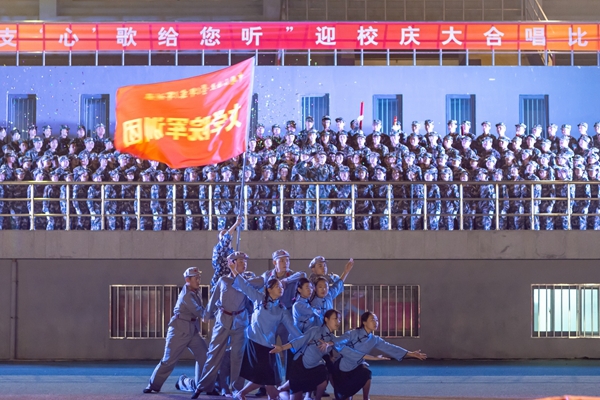 为迎接65周年校庆,9月24日,我校于体育场举办“唱支‘心’歌给您听”迎校庆大合唱比赛。由全讯18级学生组成的军训六团夺得合唱比赛的一等奖和最佳指挥奖。
