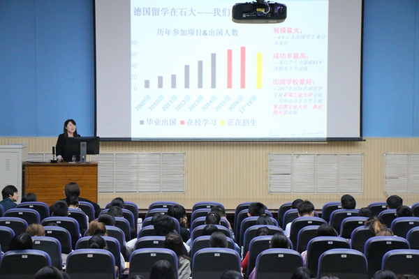 会议伊始,孙大满对文学院出国交流整体情况进行了介绍,随后,各项目主讲老师依次介绍了国家公派留学生项目、CSC优秀本科生项目及联合培养项目、校际联合培养及攻读硕士合作项目、德国卓越名校项目等10个项目,并阐述了这些项目的特点优势、报名流程、成本花费以及对学生未来发展规划进行指导。最后,吴克华对学生留学项目规划进行了总结和指导。她指出,出国留学不仅可以开阔视野,提高外语能力,扩充人脉,为自己的未来打下牢固基础,更有利于在回国后,更好地建设我们祖国。“虽然我们是理工类院校,但并不意味着文学院学子就会在这里被埋没,我们可以也愿意为文学院的学生们提供更多样化的选择。”吴克华说。
