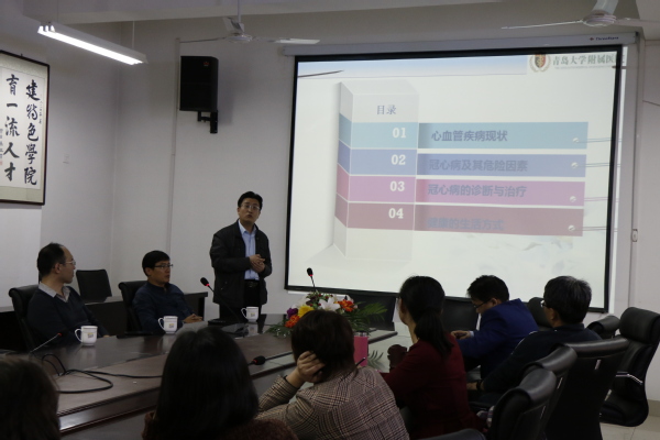 10月25日下午,文学院工会举办“心脑血管健康及常见疾病预防”讲座,为广大教职工普及心脑血管健康知识,青岛西海岸附属医院张伟教授,副主任医师李宏、杨斌应邀参加。