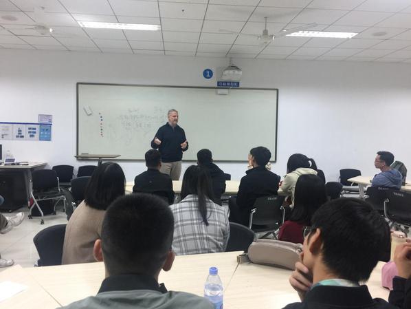 为了加强我校双一流建设,进一步推进研究生教育的国际化,10月25日晚,我校研究生英语教学改革之语言实践活动英语角在综合实验楼A406如期举行,英语爱好者积极参加并进行了热烈的讨论。外教Russ和Scott在现场做了激情演讲和美国文化介绍,文学院郭月琴教授也在现场积极调动研究生同学开口说英语,激发了同学们练习英语口语的热情,现场气氛热烈。有好几位同学羞涩地说这还是第一次和外国人面对面讲英语,很紧张,后来就好多了。同学纷纷表示喜欢这样的英语活动和浓浓的英语学习氛围,口语很重要,希望以后学校多搞些类似的活动,更希望免修的同学也到现场来,带动一下其他基础薄弱的同学。