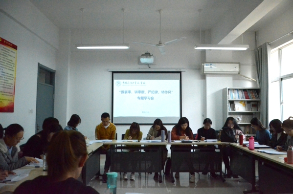为提高学生干部素养,增强学生干部的先锋模范意识,11月1日,文学院研究生会在文理楼306室召开“做表率、讲奉献、严纪律、转作风”主题学习会。文学院团委书记赵振华及研究生会全体成员参加此次会议。
