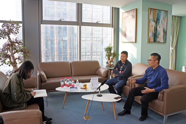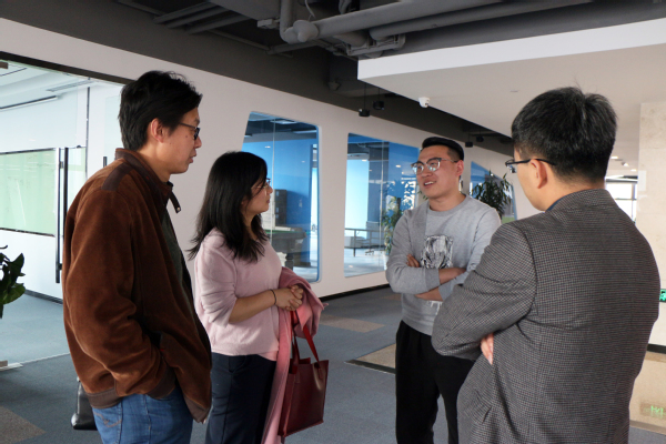 座谈伊始,魏学宝、沈壮娟询问视觉志发展近况,并回忆起刘义宝、冯建波、李飞鸿三人上学期间的趣事,现场轻松愉快。当谈到学院人才培养时,魏学宝表示,学院已将关于新媒体的专业实习列入汉语言文学专业培养方案,希望视觉志可以作为主讲嘉宾为在校生做新媒体内容和运营方面的讲座。赵振华立足于学院学生发展需要,邀请他们回校做创新创业指导讲座,为在校大学生在创新创业方面提供借鉴和示范作用。座谈结束后,文学院传媒中心学生代表张淑琪就创业历程、创业心得和感想建议等几方面对刘义宝和冯建波进行了采访。李飞鸿带领全讯师生参观视觉志公司以了解公司具体运作情况,在交流中就文学院在视觉志建立“专业实习实践基地”达成初步想法。