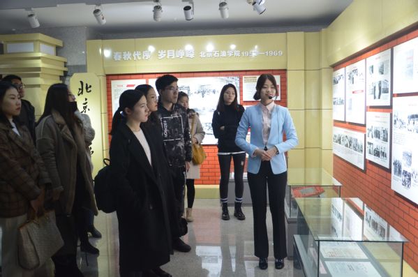 进入校史馆,讲解员为大家详细介绍了中国石油大学建校65周年以来的历史,从春秋代序岁月峥嵘的北京石油学院时期,讲到风雨无阻砥砺前行的华东石油学院时期,从继往开来华章再启的石油大学时期,讲到今天海纳百川扬帆远航的中国石油大学。伴随着讲解,同学们走过一条条展廊,仿佛置身于历史的长河,见证了石大人努力拼搏的历程,也见证了石大人在科研实践方面所取得的累累硕果。活动过程中,同学们认真参观,积极记录,从一张张图片、一件件历史实物中,同学们深切地感受了学校厚重的历史积淀、沧桑的办学历程、丰硕的办学成果和奋发的进取精神,深刻认识了石大精神文化。一些同学边听讲解,边用手机、相机把一些校史资料记录下来,大家一致为学校取得的成就、为学校新的发展而骄傲。