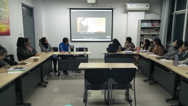 研会全体成员观看《我的修养要则》的讲解视频(摄影:岳晓君)