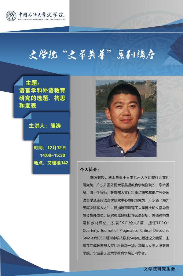【学术讲座预告】语言学和外语教育研究的选题、构思和发表