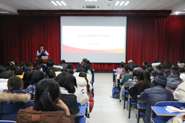 文学院2018年团校开班仪式于12月8日下午在文理楼142室举行,此次开班仪式及团校第一课由文学院团委副书记、团校副校长付晓主持,校团委书记张展受邀担任主讲人。文学院党委副书记邹维忠、团校校长赵振华出席,学院团委委员及团校学员参加。