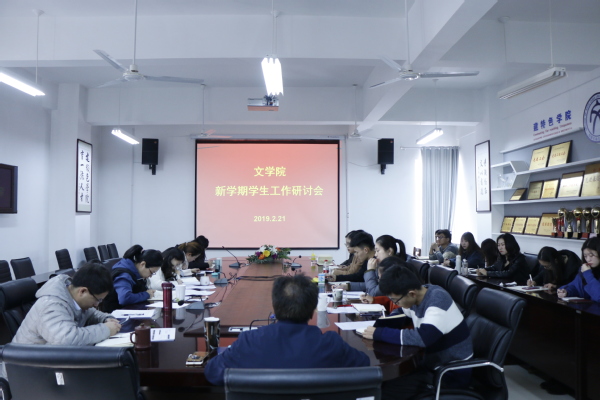 2月21日上午,文学院学生工作组于文理楼358召开新学期学生工作研讨会,汇报新学期各项工作计划。学院学生工作办公室主任梅琳主持,院党委副书记邹维忠、学生工作组全体成员和学生干部代表参加会议。