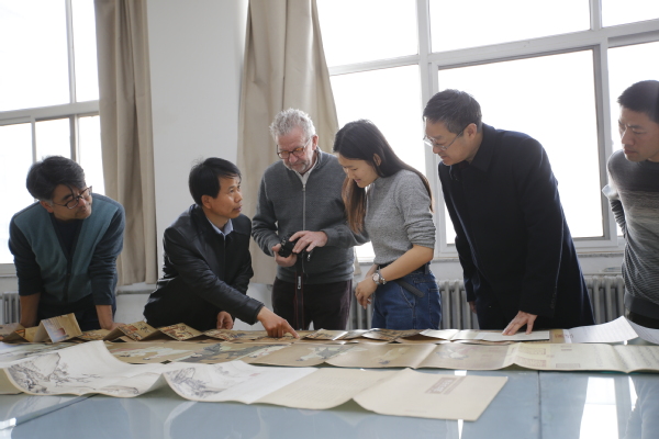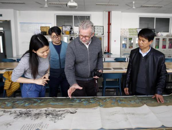 3月26日,山东青岛中国石油大学(华东),丹麦工程院院士彼得•维•尼尔森(Peter V. Nielsen)在进行学术交流之余,来到该校美术系,和王成宝、孙峰等美术系教师进行中国传统美术艺术交流,领略历史悠久的中国艺术和博大精深的中国文化。