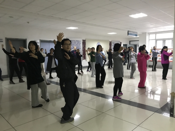 太极拳含蓄内敛、颐养性情、强生健体,同时不需要借助器材和运动场所,方便推广和交流。学习太极拳活动,学院领导高度重视,学院工会积极推广。去年开始,学院就派出骨干老师跟随太极拳教练取经学习,学成后积极培训院内教师,形成一带多,熟练带生疏,课下工作之外,QQ群微信群上,教师们积极交流讨论,形成了一股修身、健身的太极风潮。每周四和周五下午,学院固定组织太极拳学习活动,无论刮风下雨,从体育场到教室的廊道都有教师们认真学习的身影。