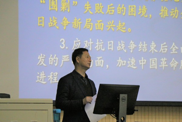 张荣华教授就中国共产党98年来取得的“三个伟大历史贡献”、“三个伟大飞跃”的成就进行详细讲授。