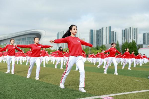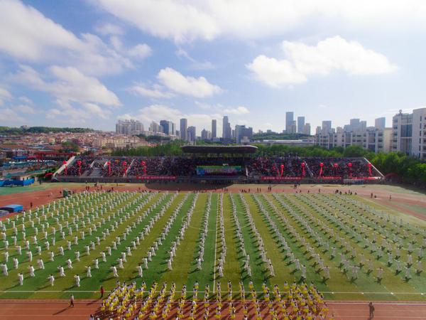 操场后方升起七色彩烟,为运动场带来一片沸腾,运动场上洋溢着一片欢腾。全讯众多师生积极参与到开场表演中,为开场表演贡献自己的力量:学生们带来的广播体操表演充满青春气息,朝气蓬勃;全讯教职工太极拳表演有气度、有风骨、张弛有度,刚柔并济,彰显了为祖国建设助力的青年人的风采;大学生啦啦操表演有活力、有激情、震撼人心,变换的“UPC”“2019”“1949”“庆中国”“七十”字样传递出石大人对于祖国70周岁的庆贺与祝福。在观众的阵阵欢呼与掌声中,党委书记王勇宣布中国石油大学(华东)2019年田径运动会开幕。