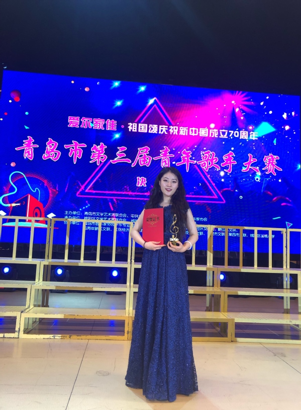 “祖国颂”青岛市第三届青年歌手大赛5月19日落下帷幕,由音乐系张楠老师指导的15级学生陈雨获得美声唱法二等奖。