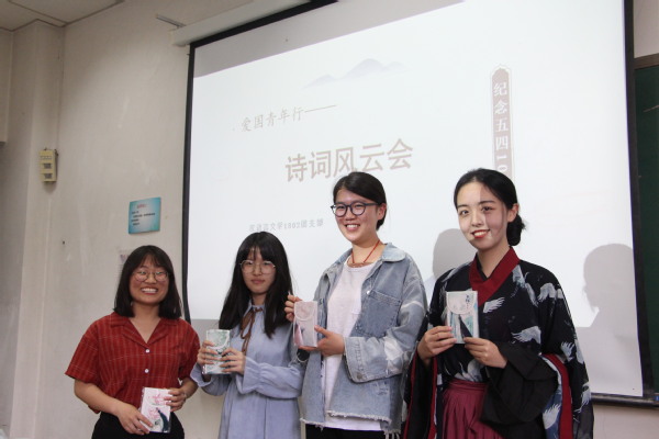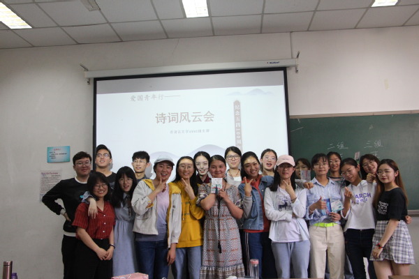 5月22日,汉语言文学专业1802团支部于南堂112室举办以传承五四精神为主题的“爱国青年行”诗词风云会。此次活动由团支书崔文琪主持,全体团支部成员参加。