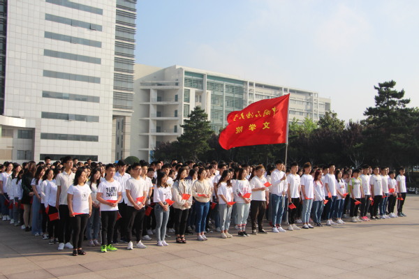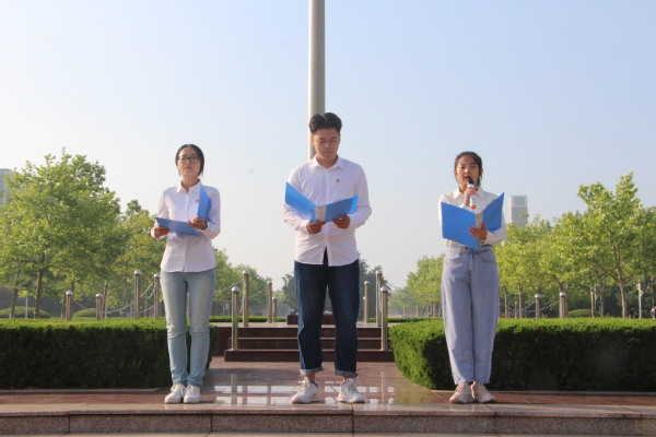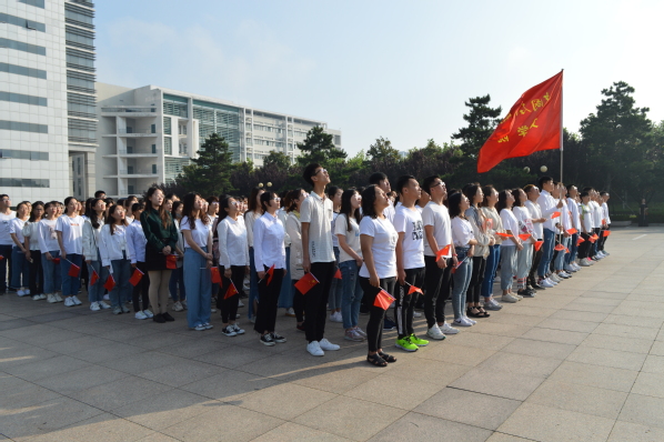 献礼七十华诞,唱响时代赞歌。为迎接共青团中国石油大学(华东)第十六次代表大会,6月16日,文学院于国旗广场举办“忆七十年艰苦奋斗,做新时代追梦青年”主题升旗仪式。本次升旗仪式由学生会主席高鑫铭主持,文学院团委委员、团校成员,研究生及本科青年学生代表、入党积极分子、各学生组织成员参加。