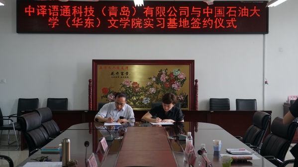 孙大满代表学院对中译语通科技(青岛)有限公司语言产品中心吕倩一行的到来表示热烈欢迎。吕倩将中译语通科技(青岛)有限公司的基本情况向与会老师进行了简要的介绍,结合时代发展潮流和企业现状,向各位老师分享未来企业布局的思路和想法,表达了对未来校企合作互利共赢的期待。王新博代表学院再次感谢企业能够提供宝贵的合作机会,他表示学院应与企业共同努力,结合“一带一路”大背景,共建多元平台,建立灵活机制,做好新时代下行业精英人才的培养。随后,双方签署了教学实习基地协议。
