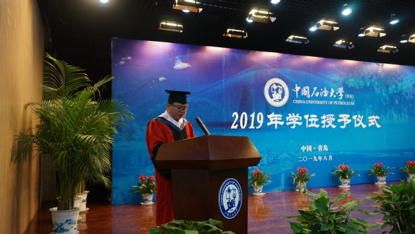 仪式在全体人员的的掌声中拉开序幕。孙大满副院长回顾了毕业生们的大学生涯,并代表学校和学院向他们表达了由衷的祝贺和真挚的祝福,向全体付出艰辛劳动的全体教师表达衷心的感谢,向给予无私奉献、支持学校工作的学生家长表示崇高的敬意。随后,孙大满副院长宣布学位授予仪式正式开始。