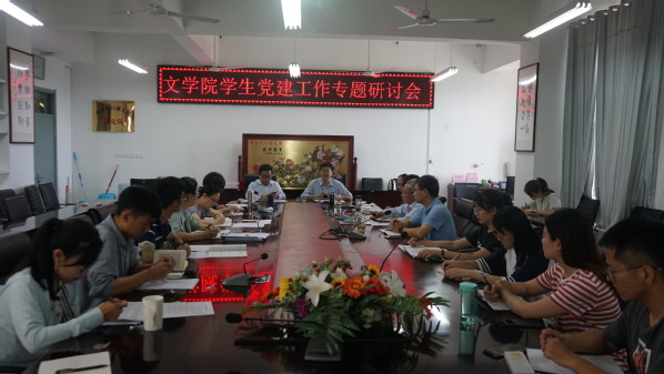 7月1日,文学院党委召开学生党建工作专题研讨会,学院全体党委委员、全体辅导员、学生党支部书记参加了研讨会,会议由党委书记张永宁主持。