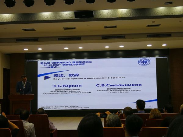 适值中俄建交70周年之际,为了在中国高校俄语专业学生中推广当代俄罗斯文学的阅读和研究,俄罗斯驻沪总领馆联合复旦大学俄语系举办了“阅读当代俄罗斯文学”大赛征文。来自莫斯科大学、北京外国语大学、北京师范大学、南京大学、厦门大学、浙江大学、黑龙江大学等70余所国内外高校的俄语专业学生参加了征文活动。参赛文章要求是研究当代俄罗斯文学的学术论文,应符合学术规范。大赛共有200余篇论文参与评比,经过国内外专家评委的投票,最终产生一等奖1名,二等奖3名,三等奖5名。全讯外国语言文学(俄语)2018级硕士研究生孙铭泽的论文《扎·普里列平小说《萨尼卡》的宗教意蕴论析》在此次征文比赛中脱颖而出,斩获佳绩,获得大赛二等奖。颁奖仪式于7.6日在复旦大学举办的第九届《俄罗斯文艺》国际学术前沿论坛期间举行,俄罗斯驻上海领事馆总领事亲自为获奖者颁发证书和奖品。