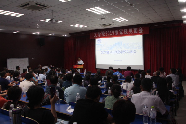 9月9日下午,文学院2019级家校见面会于文理楼模拟法庭142召开。文学院院长王学栋,党委书记张永宁,副院长孙大满、魏学宝,各系主任和辅导员出席会议,2019级新生家长参加。会议由党委副书记邹维忠主持。