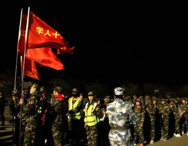 9月23日凌晨,我校2019级大一新生五千余人进行夜间拉练活动,文学院217名新生参与其中。浩浩荡荡的行军队伍从学校出发,赴唐岛湾公园大古墩战斗遗址,全程约19公里,耗时5小时。
