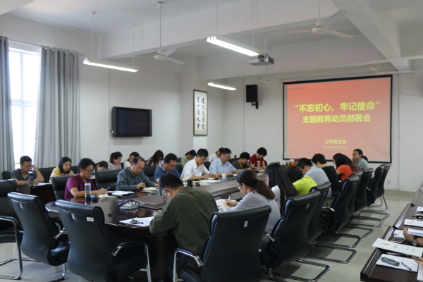 9月23日,文学院召开“不忘初心、牢记使命”主题教育动员部署会,深入贯彻落实习近平总书记在“不忘初心、牢记使命”主题教育工作会议上的重要讲话精神,落实学校党委对主题教育的部署要求,对全院主题教育进行动员与重点部署。党委书记张永宁作动员部署,院长王学栋主持会议,师生党支部书记和部分党员代表参加会议。学校“不忘初心、牢记使命”主题教育第一指导组联络员姜飞出席会议。