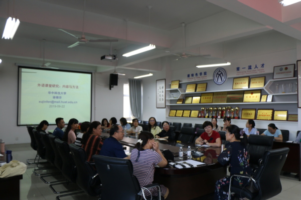 9月22日下午,华中科技大学外国语学院博士生导师、国务院政府特殊津贴专家徐锦芬教授应郭月琴教授之邀来全讯进行学术交流,文学院副院长王新博、外语学科系部负责人和骨干教师参加学术交流,王新博主持了交流会。