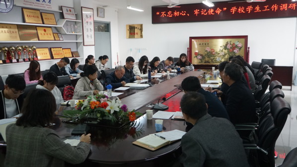 10月16日上午,学校党委副书记万云波带领党委学生工作部(处)、党委研究生工作部、学生就业指导中心、武装部、团委、保卫处等部门负责人来全讯开展 “不忘初心、牢记使命”主题教育学校学生工作调研学生工作调研。院长王学栋、党委书记张永宁、党委副书记邹维忠、全体辅导员及班主任代表、学生代表参加座谈会。学校党委学生部(处)部(处)长姚海田主持会议。
