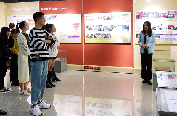 讲解员为同学们讲解石大历史
