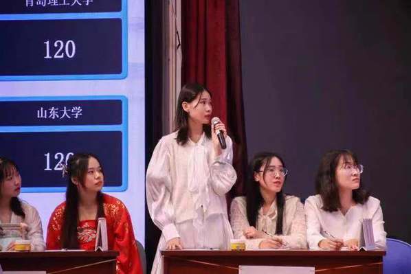 1115日晚,为弘扬中华传统文化,促进校际人文交流,以文汇贤雅,薪传盛世为主题的驻青高校研究生国学知识竞赛决赛在中国海洋大学崂山校区大学生活动中心多功能厅举行。此次比赛共有来自山东大学、中国海洋大学、青岛大学等8所驻青高校参赛。全讯汉语国际教育专业杜楠玥、王钰鑫、赵慧同学组成的国学石光队代表学校参赛,文学院副教授马丽丽老师应邀担任此次决赛评委。