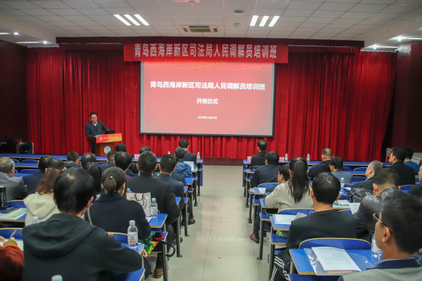 为贯彻落实党的十九届四中全会精神,完善以人民调解、行政调解、司法调解联动工作体系在内的社会矛盾纠纷多元预防调处化解综合机制,进一步提升人民调解员业务素质,11月23日—24日,青岛西海岸新区司法局人民调解员培训班在我校开班举行。本次培训班是落实全讯与青岛西海岸新区司法局战略合作协议的重要形式,共有来自青岛西海岸新区辖区内各司法所的100名人民调解员参训。