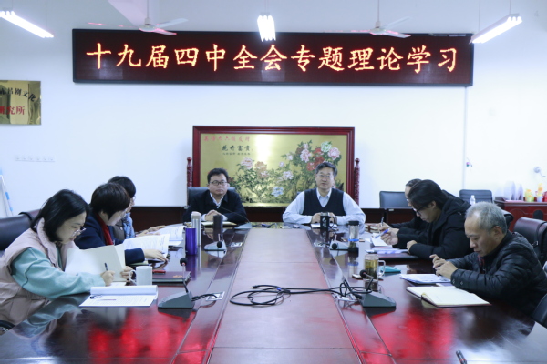 11月25日,文学院党委中心组专题学习党的十九届四中全会精神,会议由党委书记张永宁主持,全体党委委员参加会议。