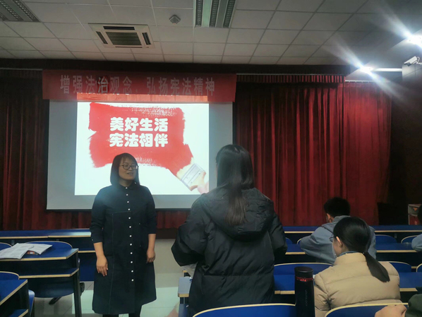 为了迎接12·4国家宪法日的到来,大力弘扬宪法精神,维护宪法法律权威,更好发挥宪法作用,12月3日晚,文学院于文理楼142模拟法庭开展了“美好生活,宪法相伴”普法讲座。本次讲座由文学院法学系谌爱华副教授主讲,以法学专业为主的170余名学生参加。