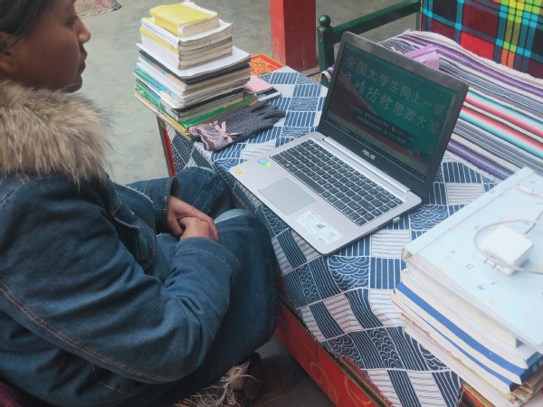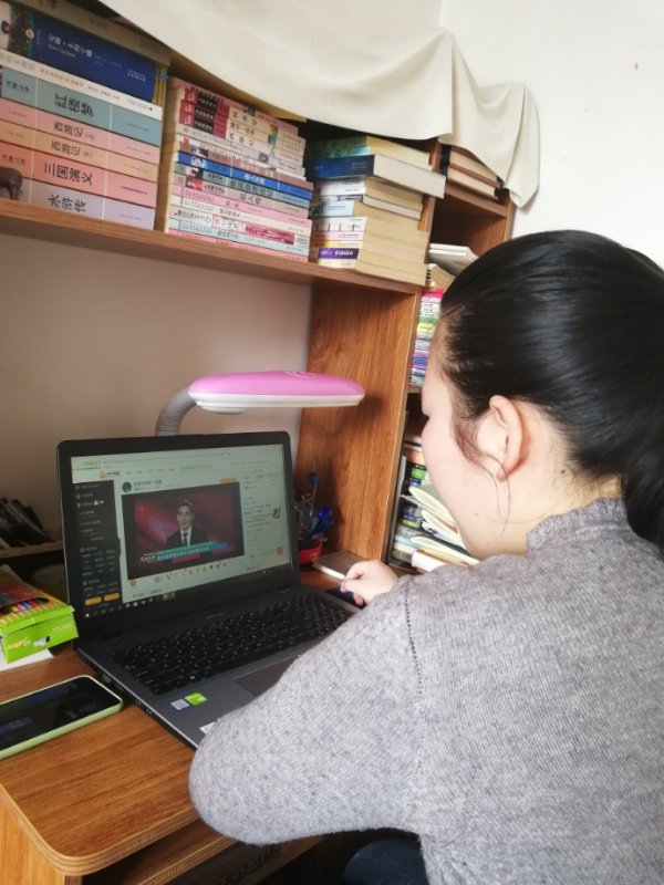 姚洁在家乡甘肃白银收看思政课