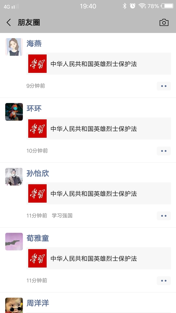 党员、团员们转发《英雄烈士保护法》。 焦萍 摄